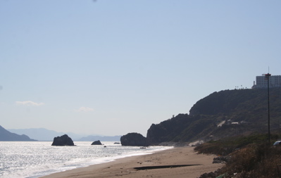 和地の海岸から日出の石門や伊良湖ビューホテルを臨んでみました。